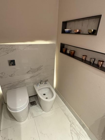 - baños: mesadas travertino hechas a medida, griferia Fv y Deca , sanitarios Ferrum