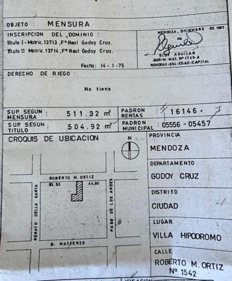 APTO CRÉDITO Este lote es una excelente oportunidad para llevar a cabo un proyecto inmobiliario en una ubicación privilegiada de Godoy Cruz, Mendoza. Con una superficie total de 511 m2, este lote cuenta con todos los servicios disponibles, incluyendo luz eléctrica, agua, gas y cloacas.